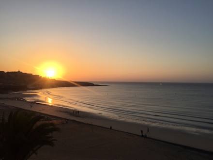 Ausblick von unserem Balkon bei Sonnenaufgang.
