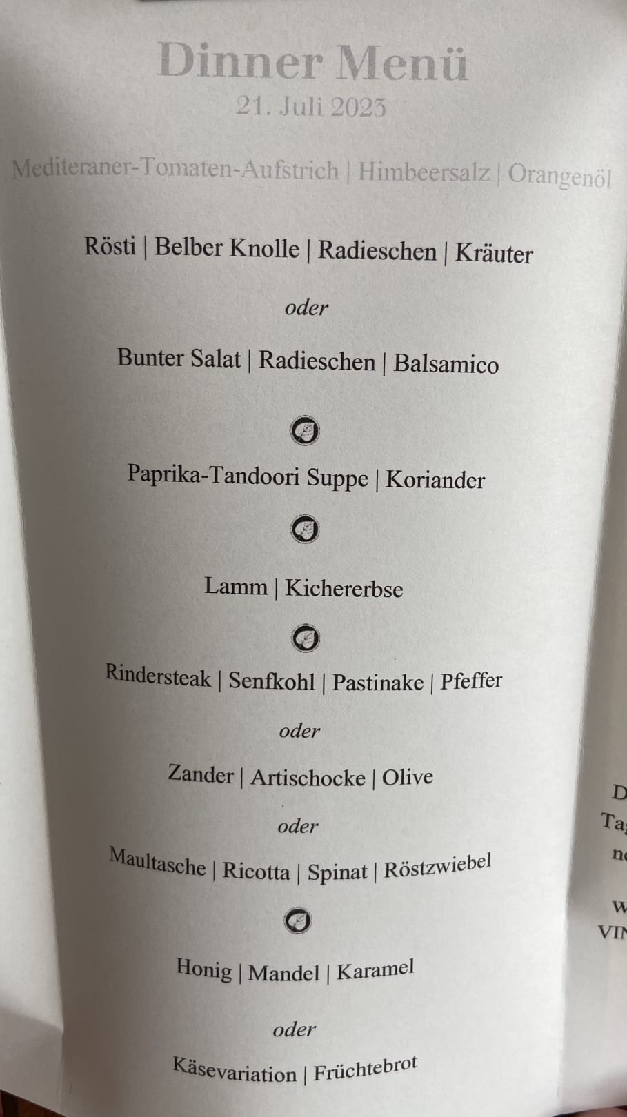 Halbpension Dinner am Abend