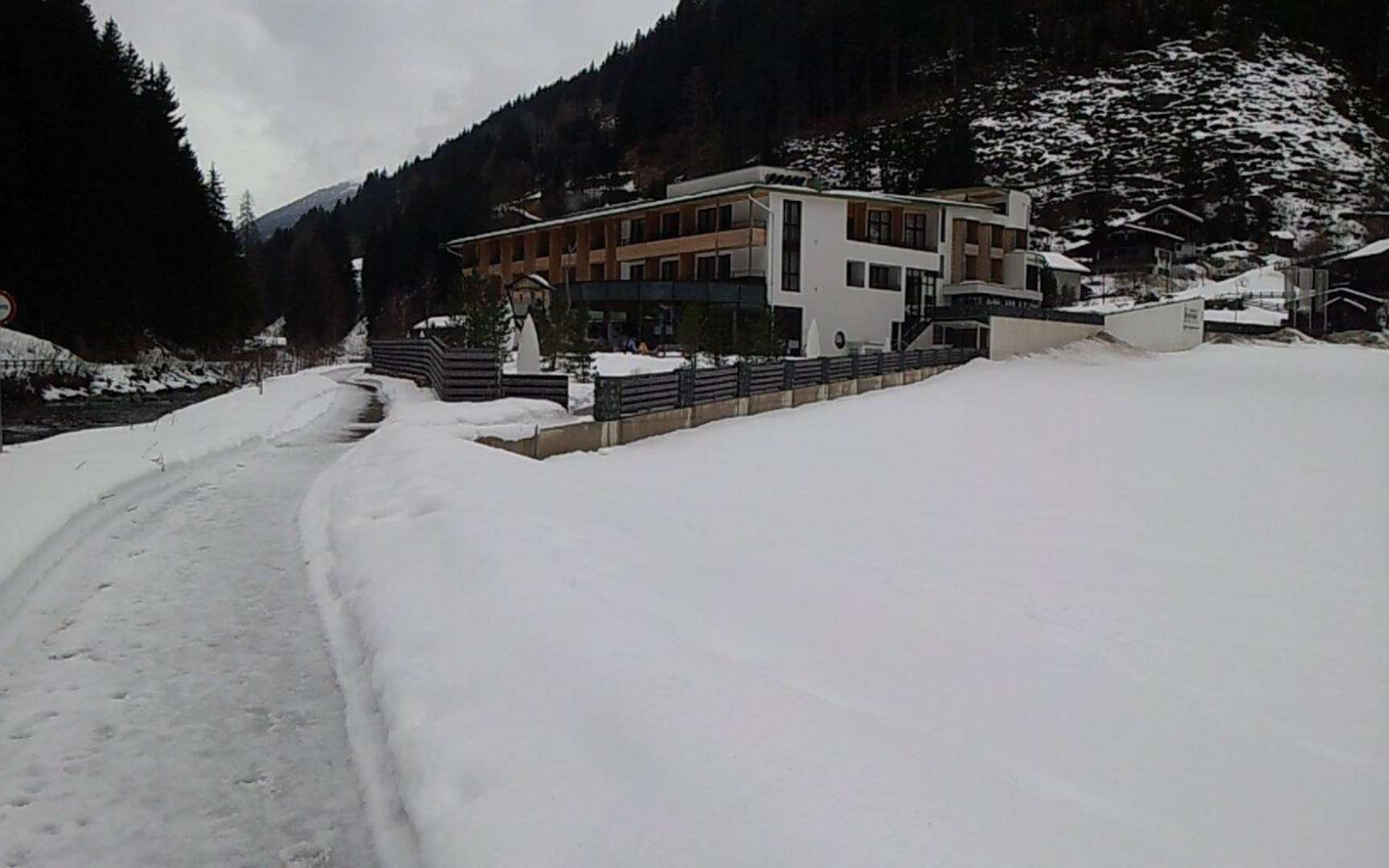 Die Loipe beim ZedernklangAm Hotel Zedernklang fließt der Schwarzach Fluß vorbei (ganz links). Daneben ein Forstweg, der im Winter vorbildlich geräumt wird (da damit die Zufahrt zu einem E-Werk erschlossen wird, ein Auto pro Tag...). Praktischerweise als Loipe und Fußweg idea