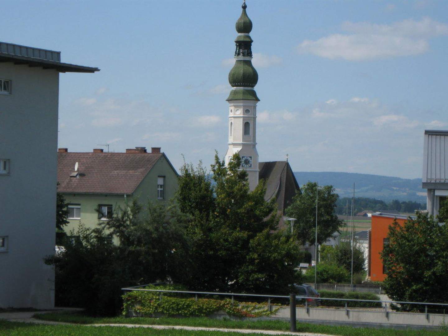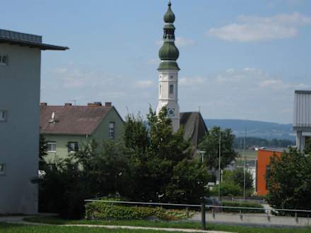 Blick zur Kirche vom Balkon