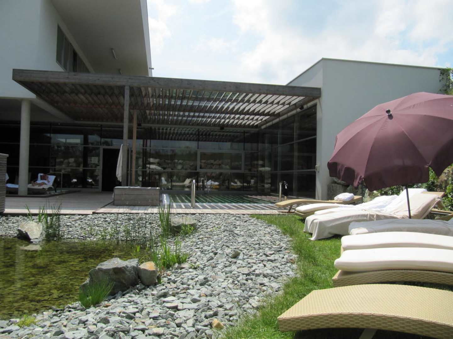 Saunaaußenruhebereich mit Sprudelbecken