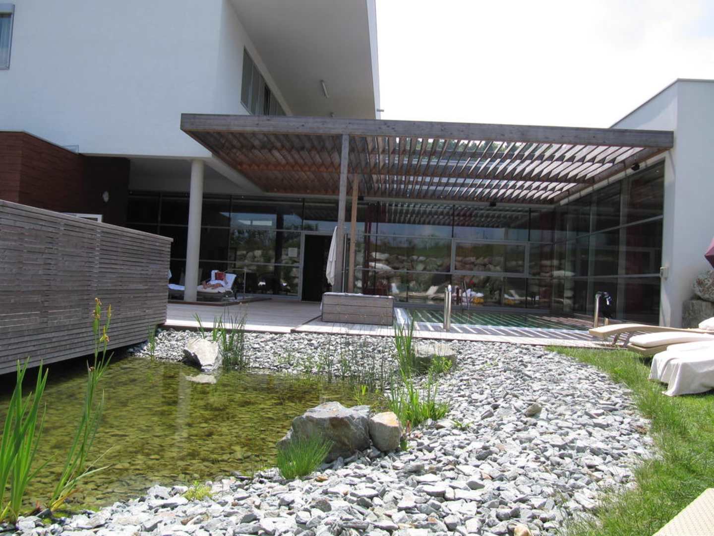 Saunaaußenruhebereich mit Sprudelbecken