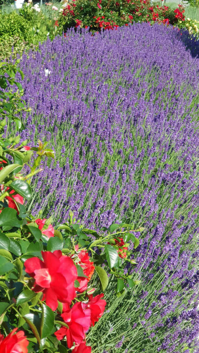 Lavendel soweit das Auge reicht, mit vielen summenden Bienchen.