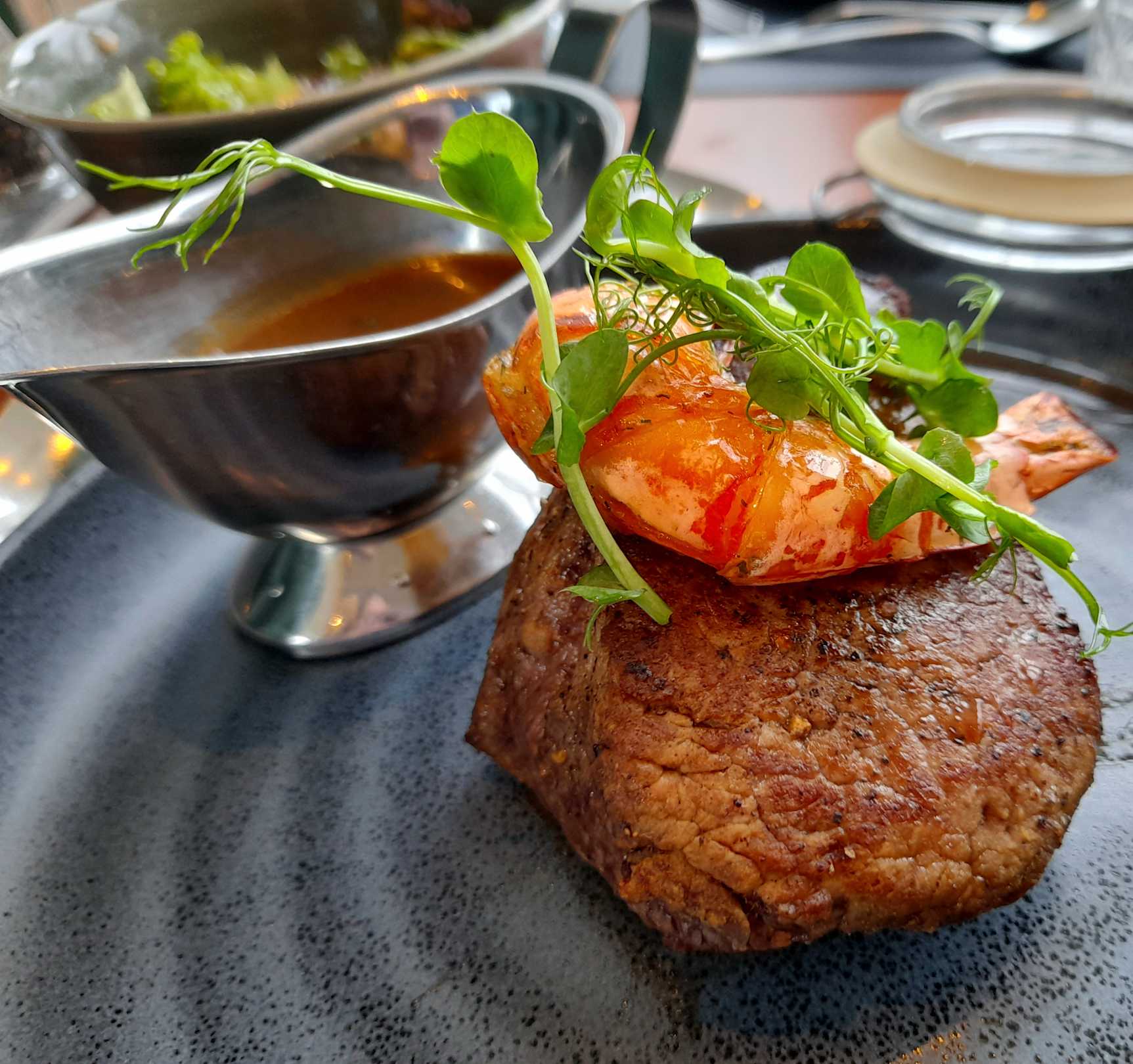 Steak mit Riesengarnele