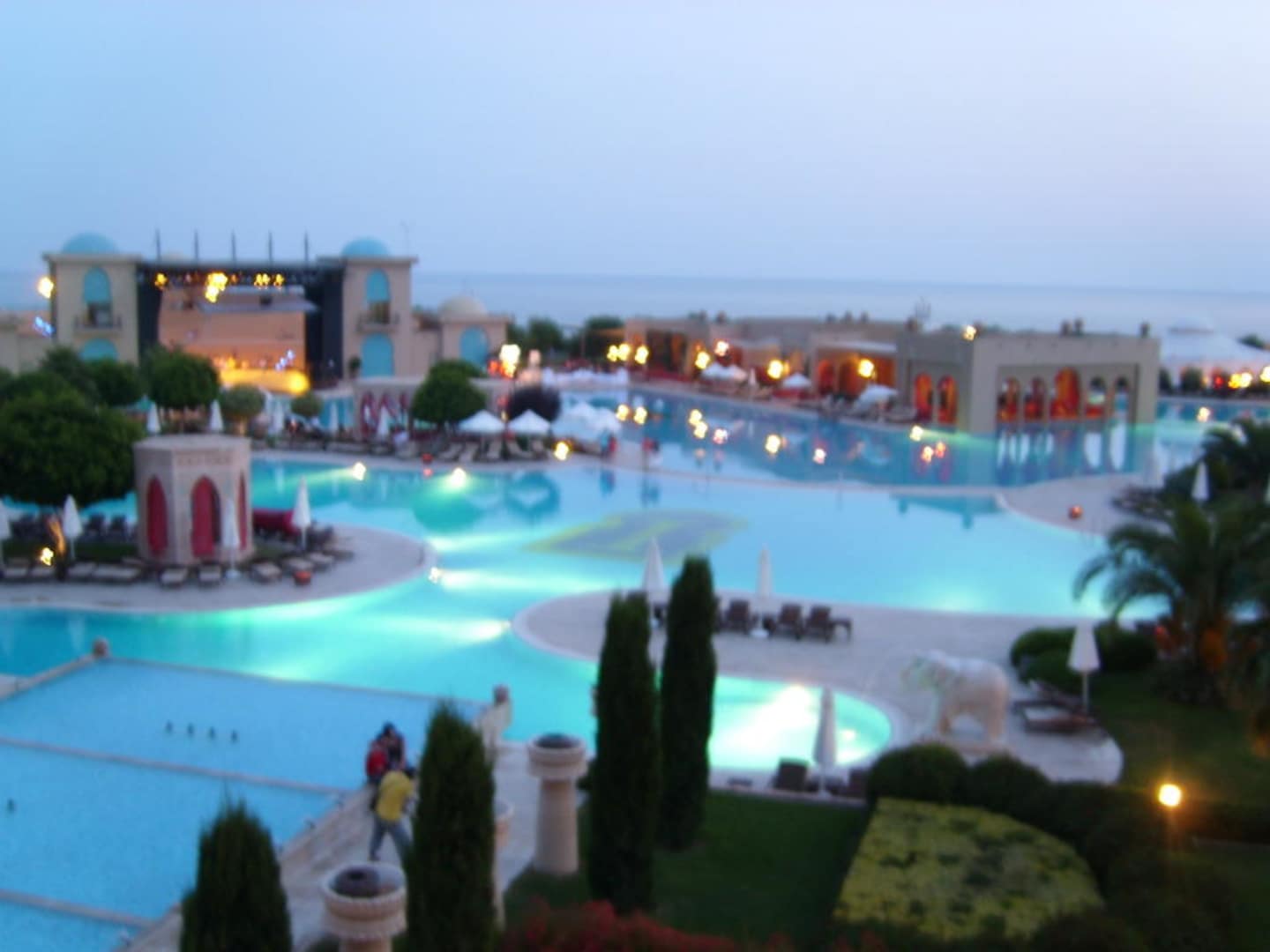 Poolanlage in der Dämmerung