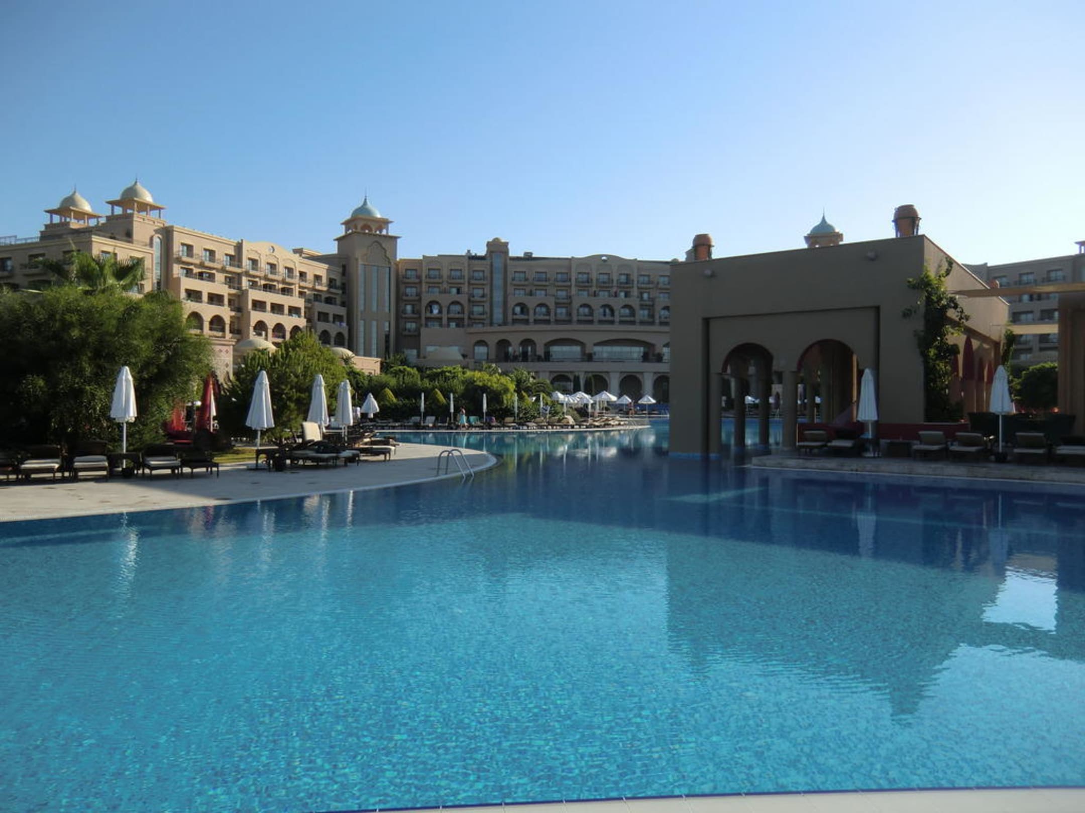 Hauptpool mit Rückansicht des Hotels Spice Hotel & Spa