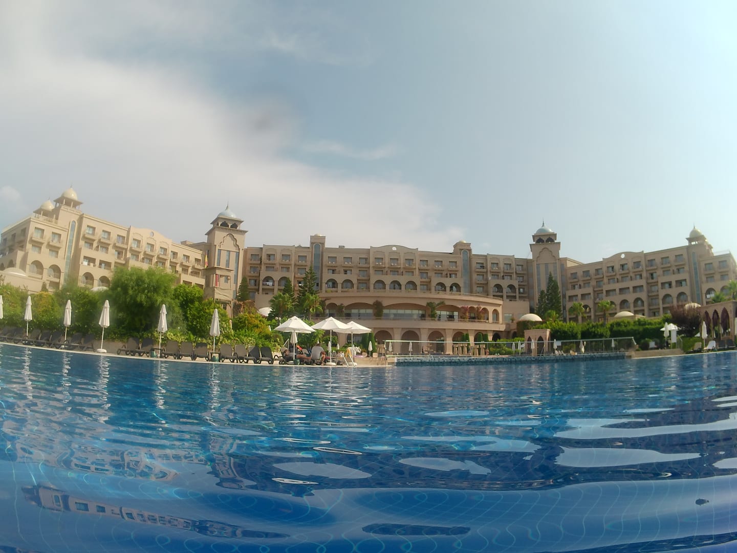 PoolBlick aus dem Pool auf das Hotel