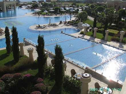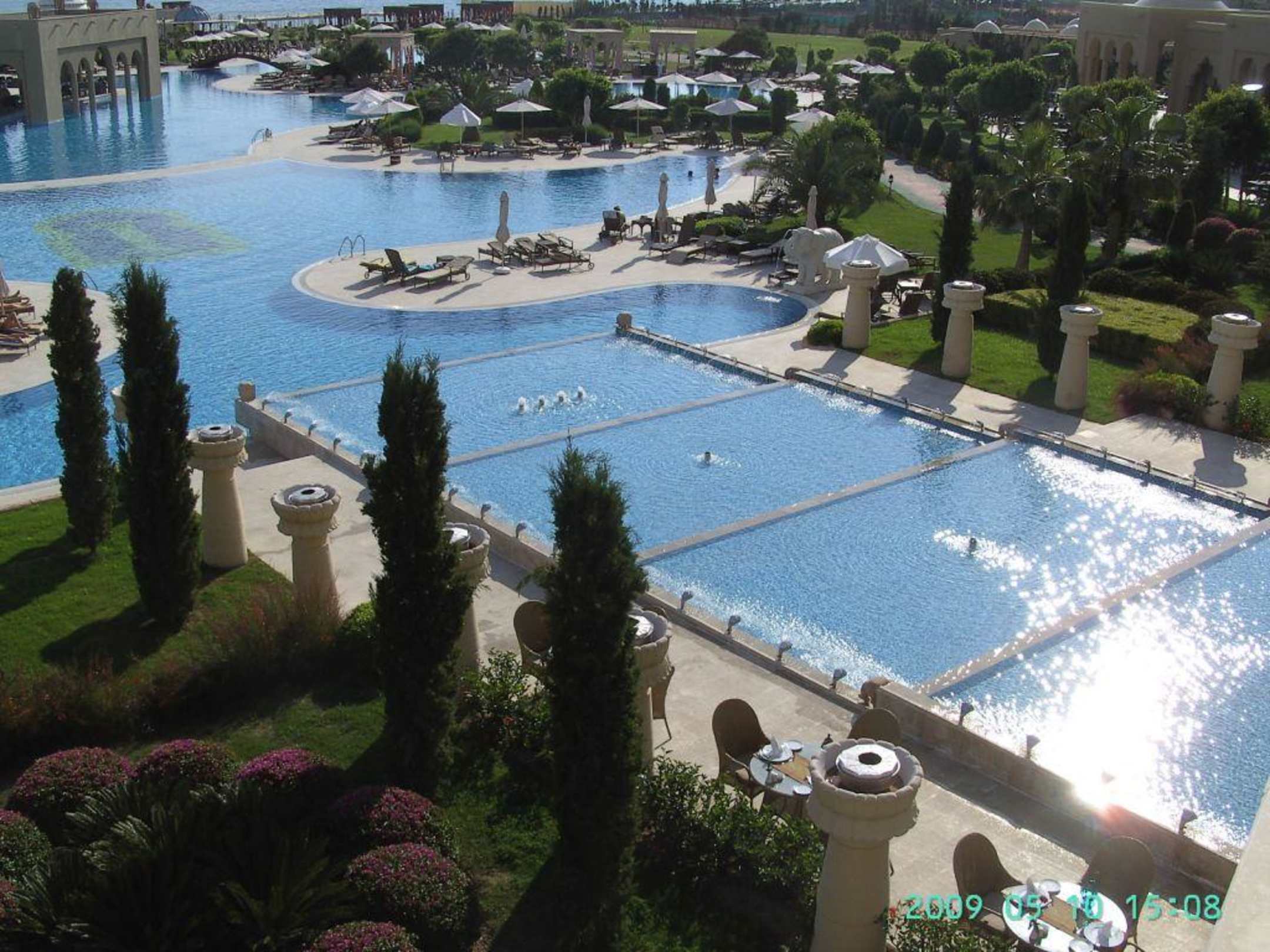 zicht op zwembad vanuit terras lobby bar