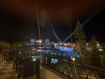 Der Ausblick aus der Terrasse von der Lobby-Etage. Besonders am Abend ein Highlight.