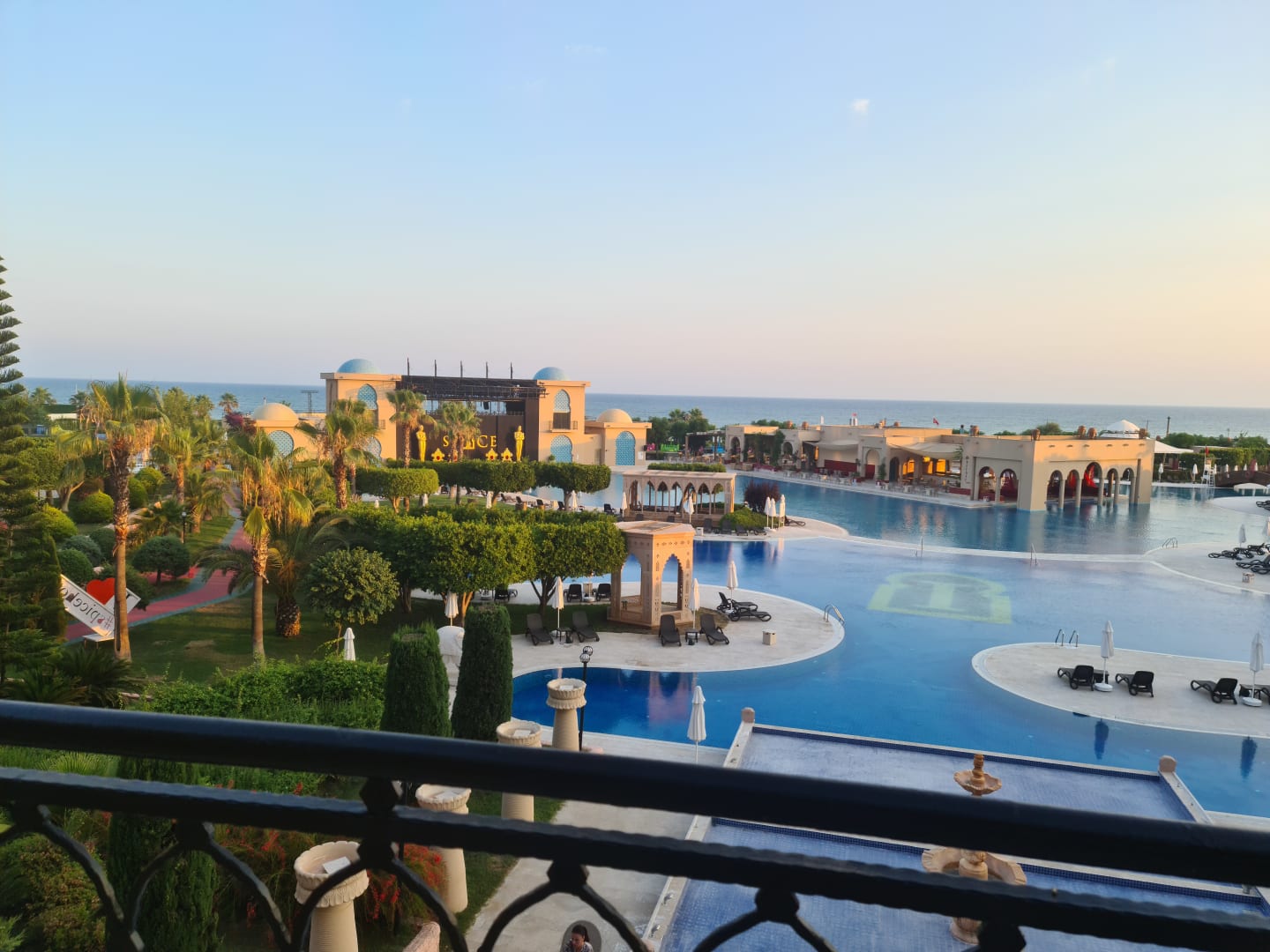 Blick vom Balkon zur Animationsbühne und Bar