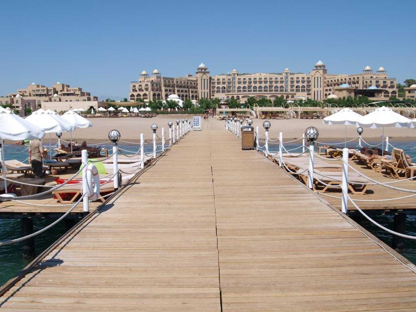 Blick vom Steg zum Hotel