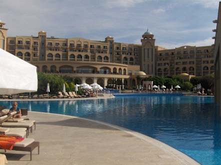 Blick vom Pool aufs Hotel