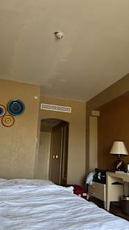 So viel zum Thema renoviertes Zimmer. Die Decke spricht Bände!