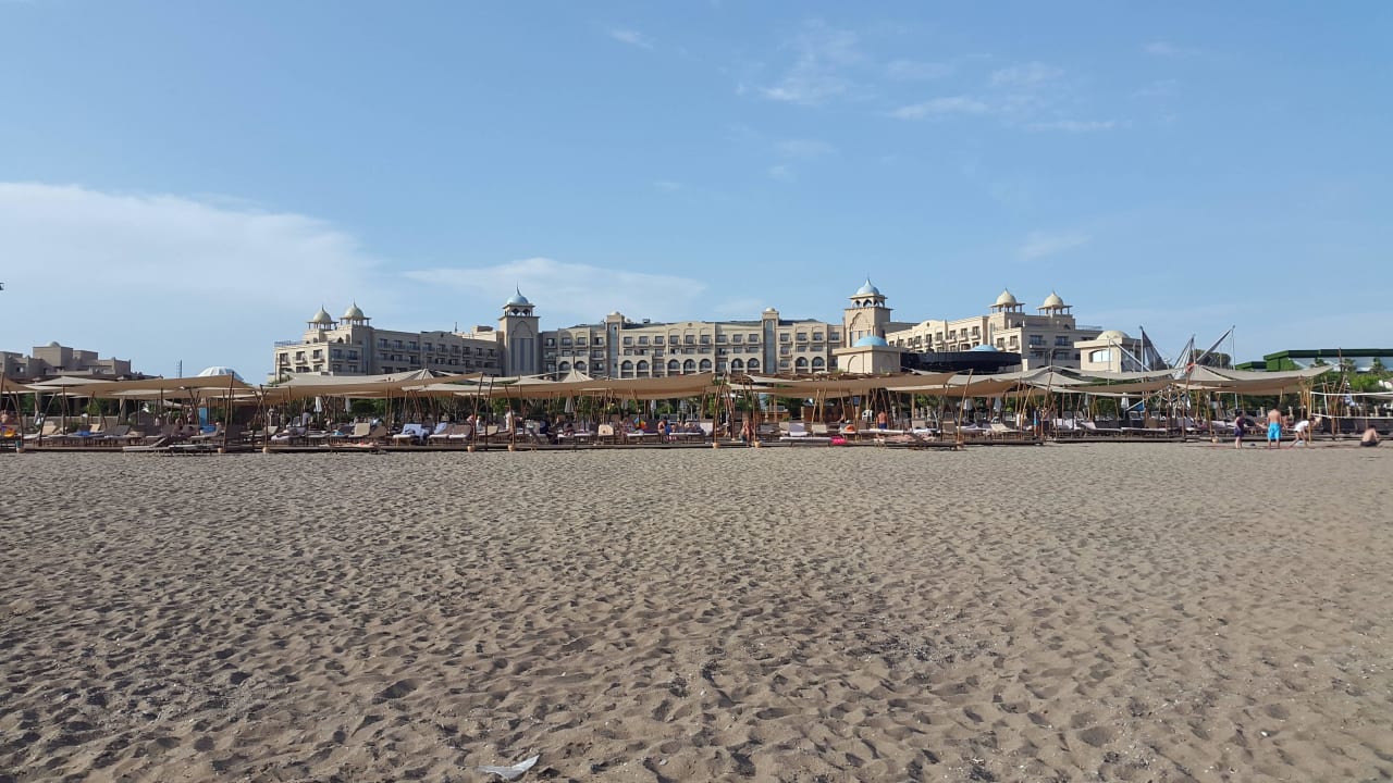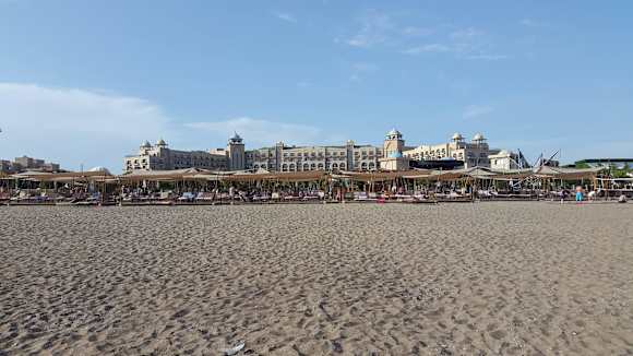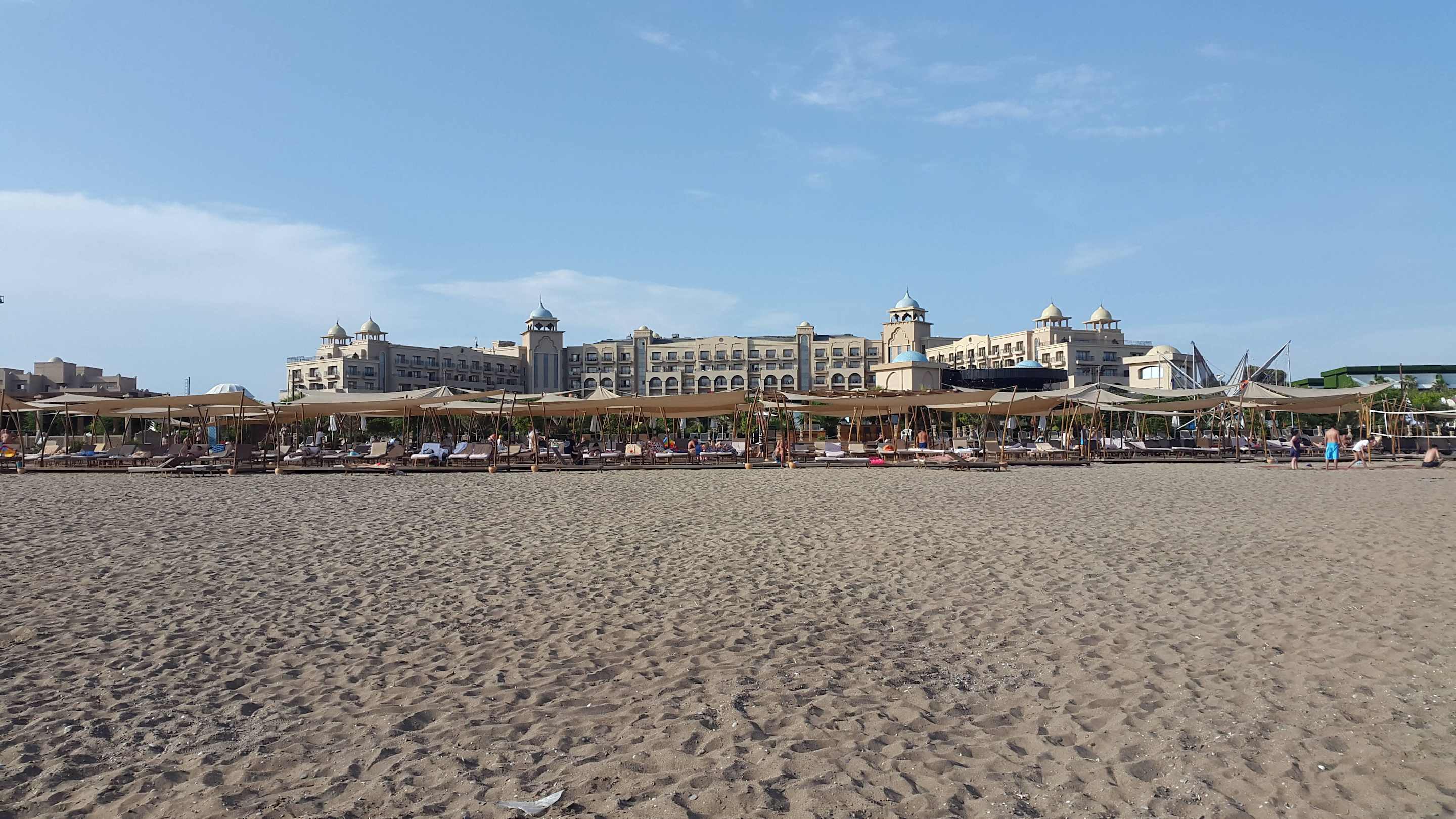 Blick vom Meer zum Hotel