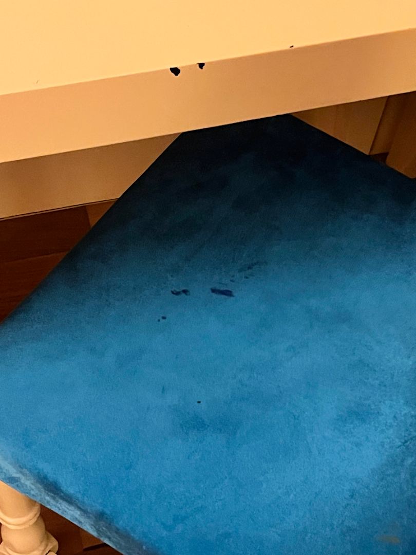 Abgenutzte Konsole und dreckige, fleckige Möbel, veraltete Ausstattung