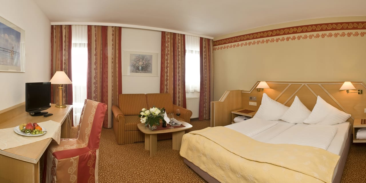 Doppelzimmer mit Balkon, Wohnecke und Ausziehcouch