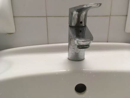 Waschbecken- verkalkt und Rostflecken an Armaturen