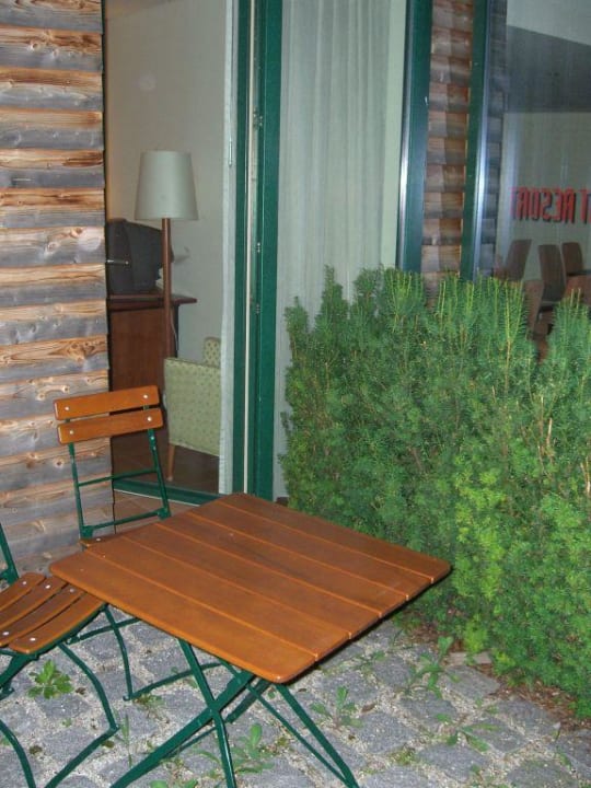 kleiner Terrassenbereich des Zimmers mit 2 Stühlen und 1 Tisch