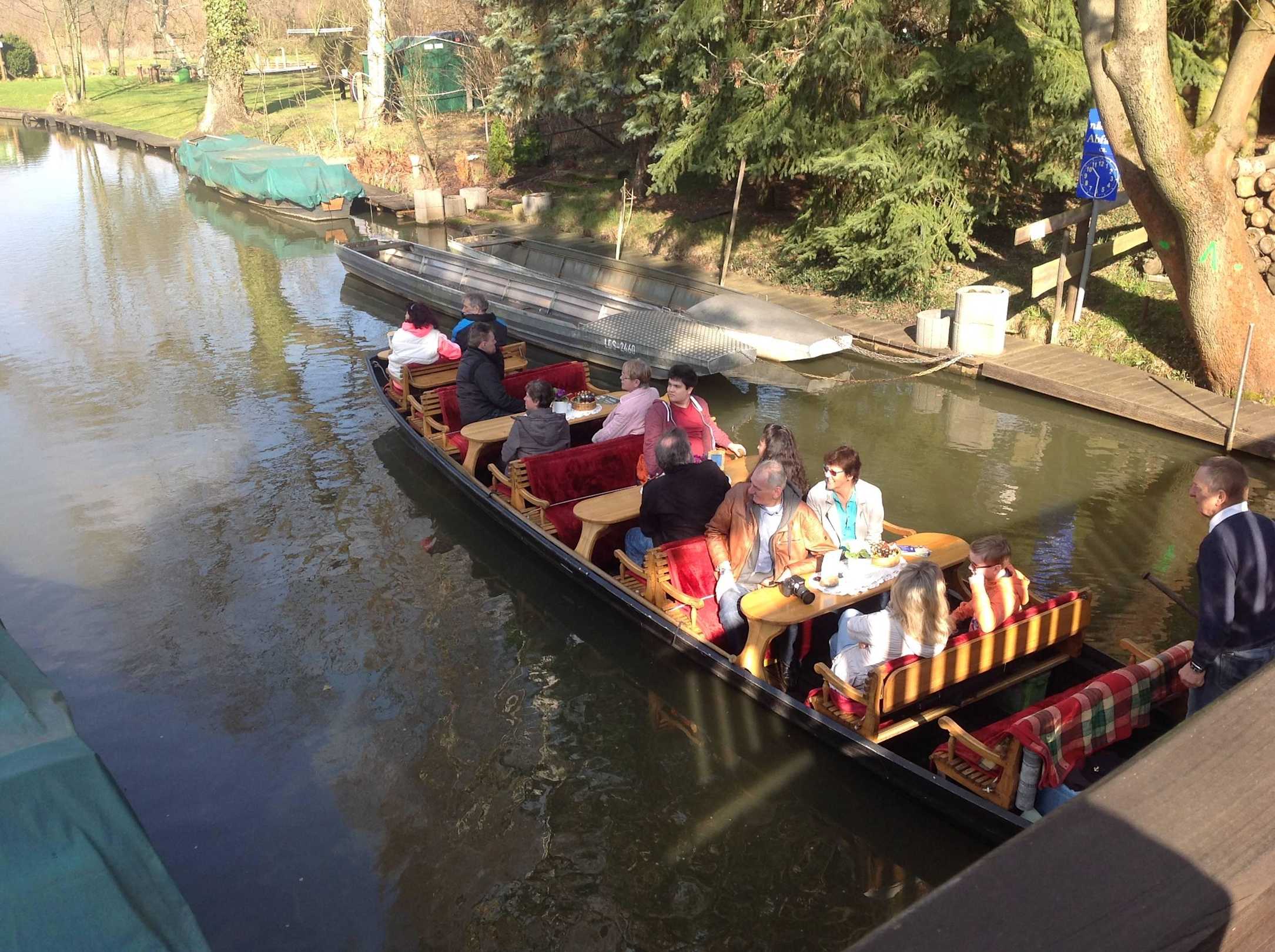 Von den Kähnen wird gewunken oder sie legen an