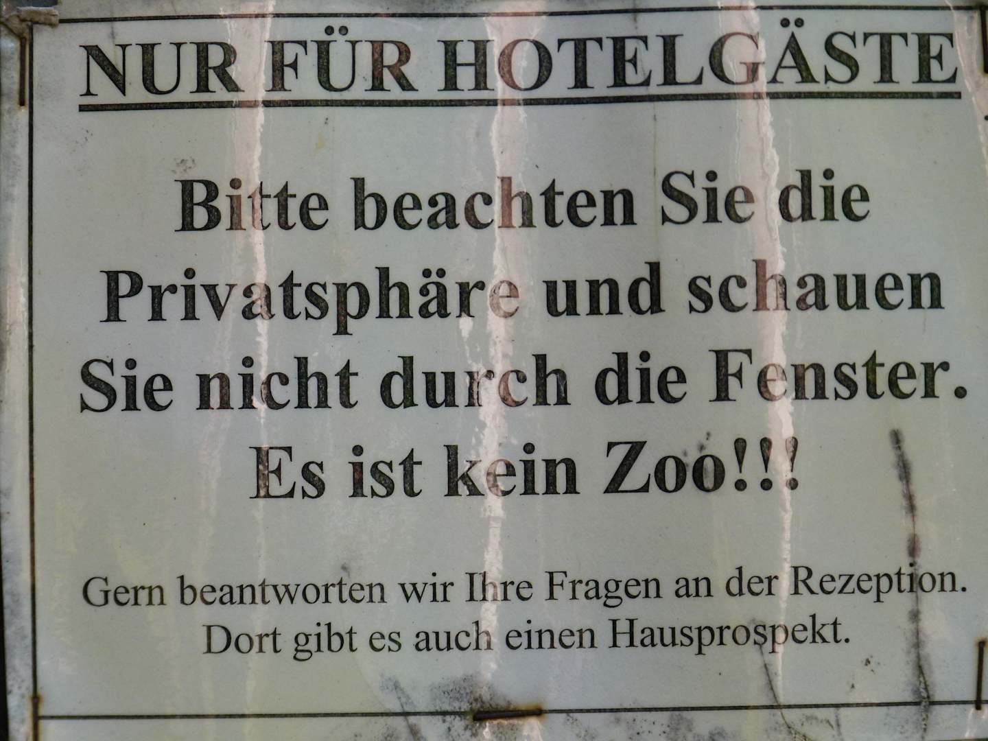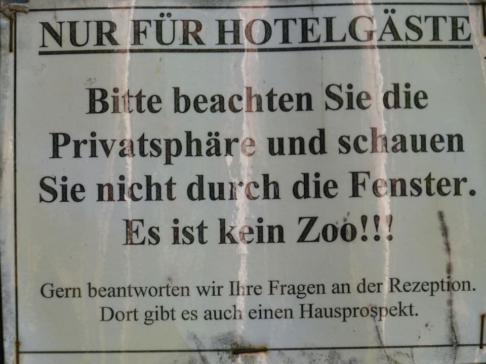 Hinweisschild an den Zimmereingängen, witzig.
