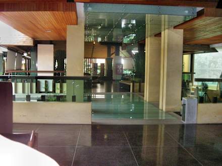 Glasboden über Wasser an der Rezeption