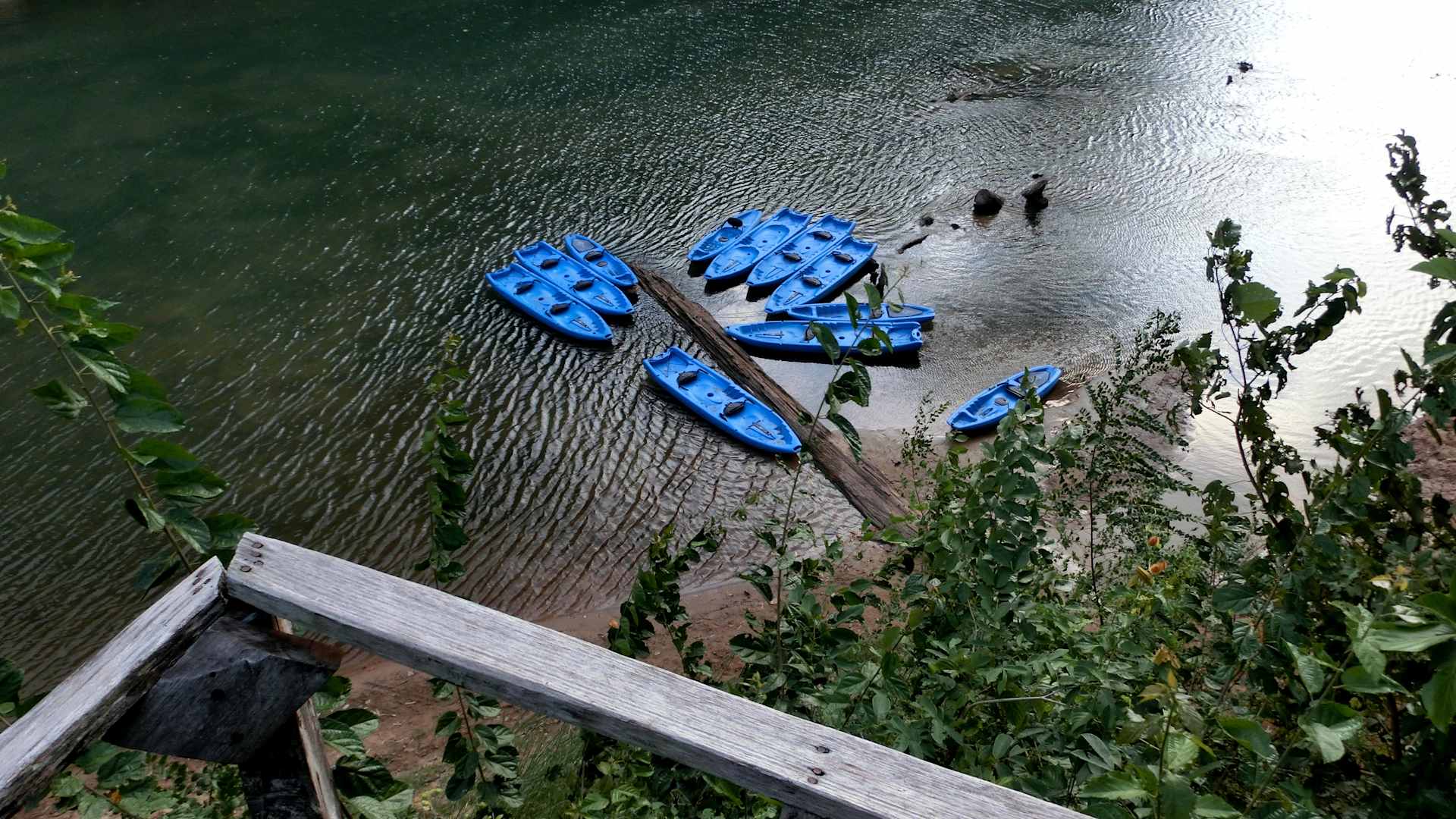 Bootsanlegestelle und gleichzeitig Pool in der türkisfarbenen Lagune. Geeignet zum Baden !! Es gibt heiße Quellen im Fluss, daher punktuell unterschiedliche Temperaturen.