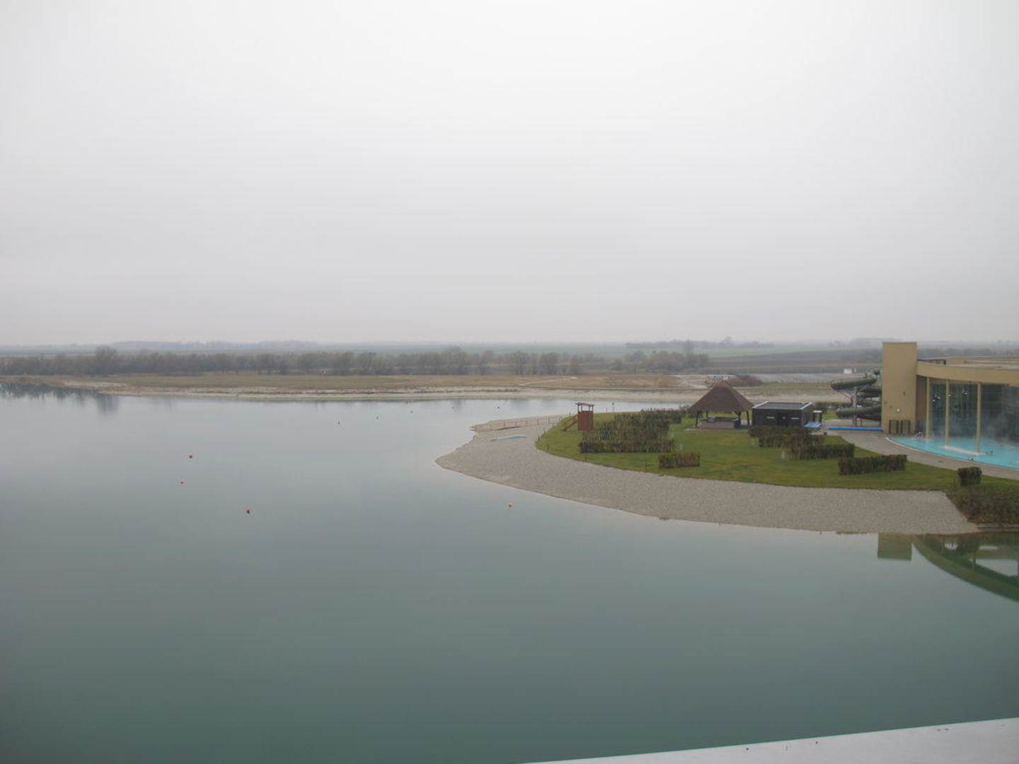 Blick auf die Therme und den See