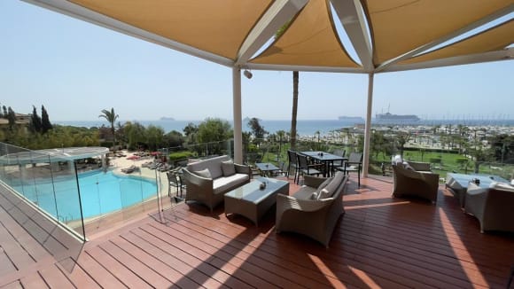 Blick von der Bar auf den gepflegten Pool