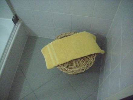 Badviele nette Assesoires runden den guten Service ab, hier steht eich echter Wäschekorb
