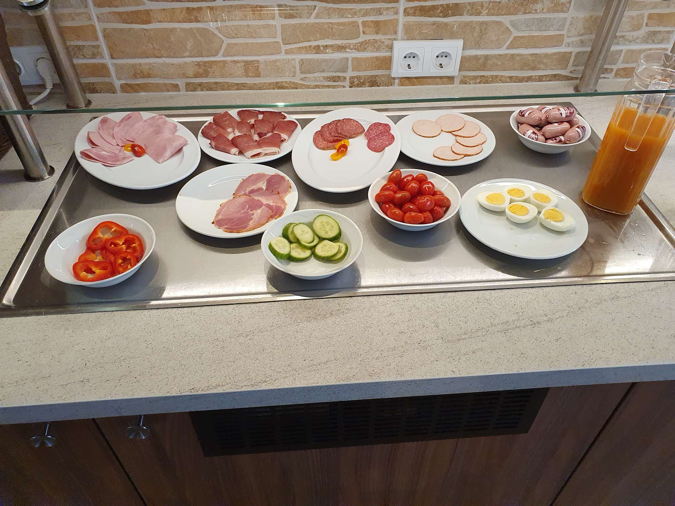 Wurstauswahl und Gemüse + Saft