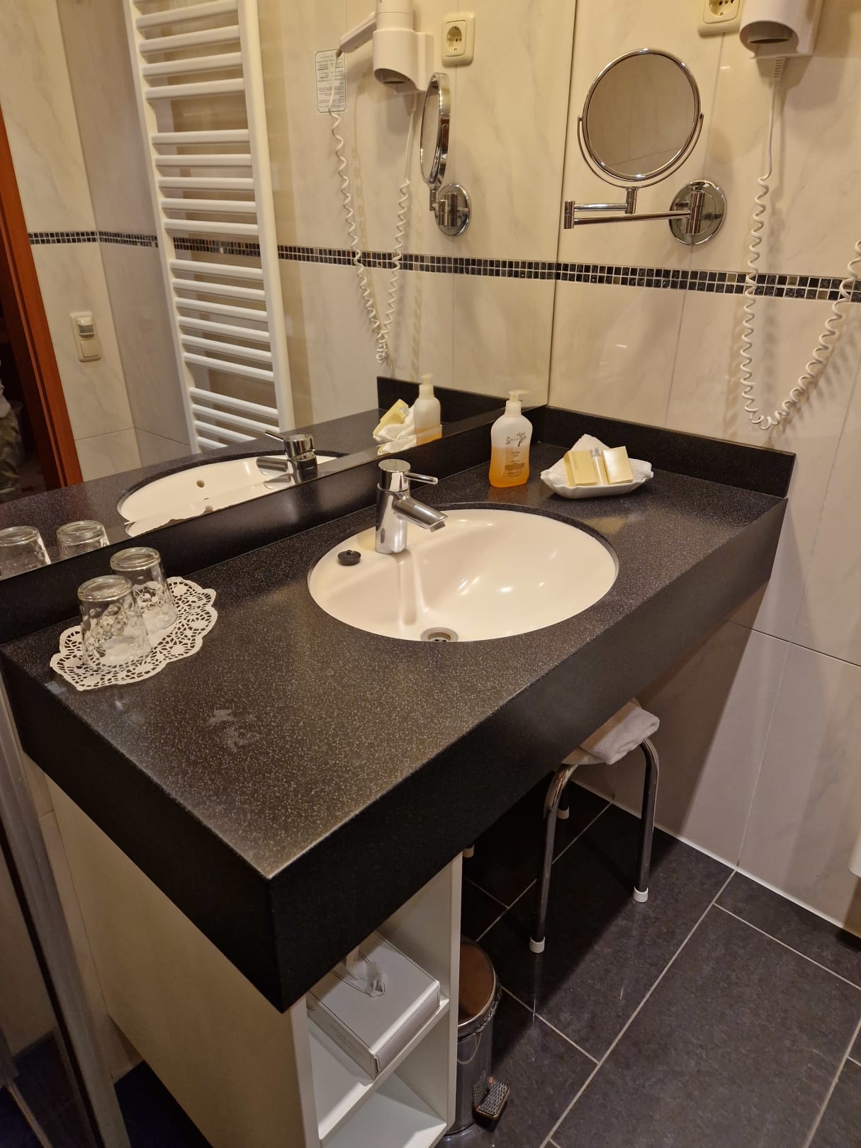 Waschtisch- es wurde sogar mal an die notwendigen Ablagen für den Kulturbeutel gedacht