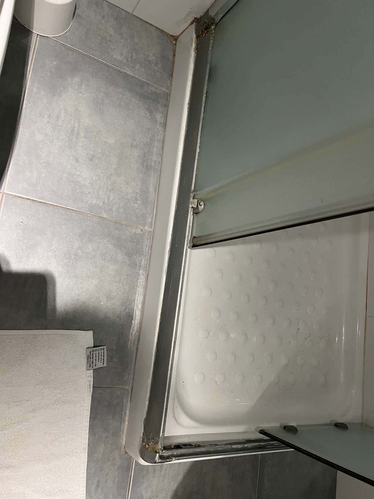 Stark verkalkte Duschwanne u Schiebetür schwer zu schieben