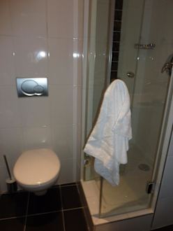 Toilette und große Duschkabine