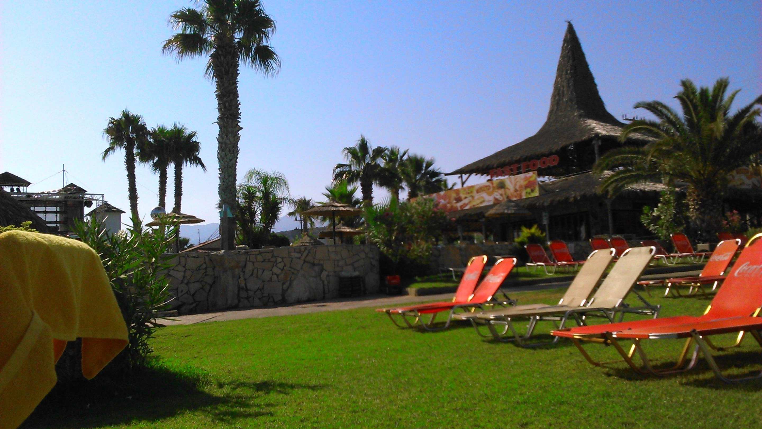 Bar przy plaży i zjeżdżalniach.