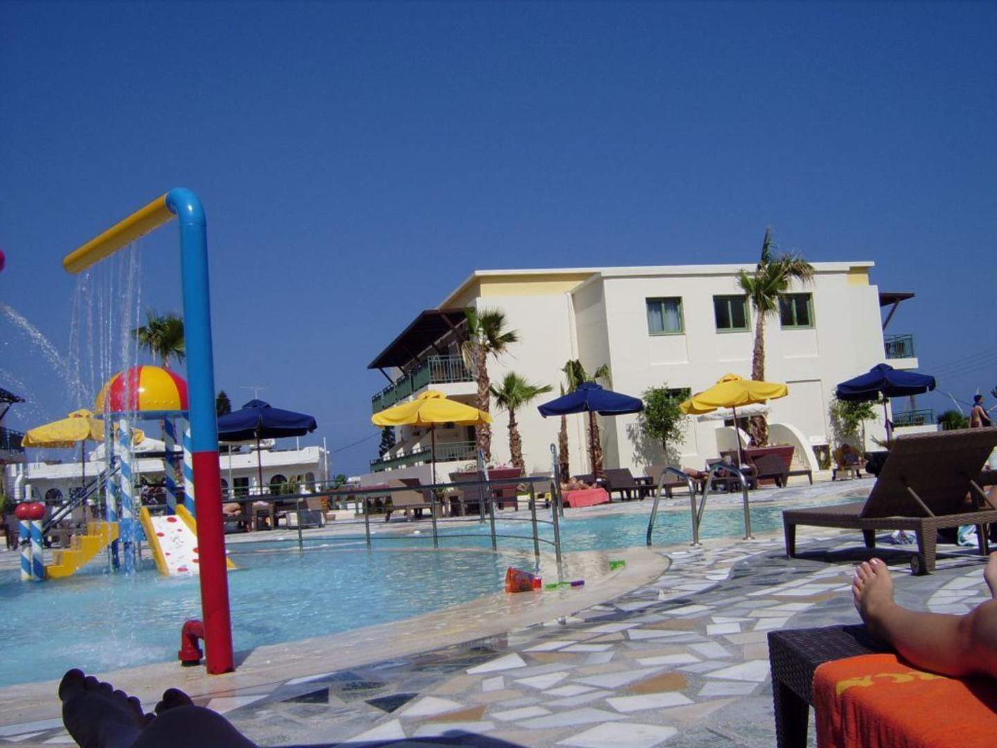 Blick auf Pool und eines der Wohngebäude