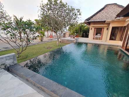 Blick auf den Strand vom Pool aus
