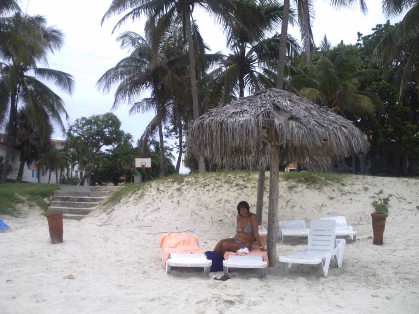 Liegen und Schirme am Strand
