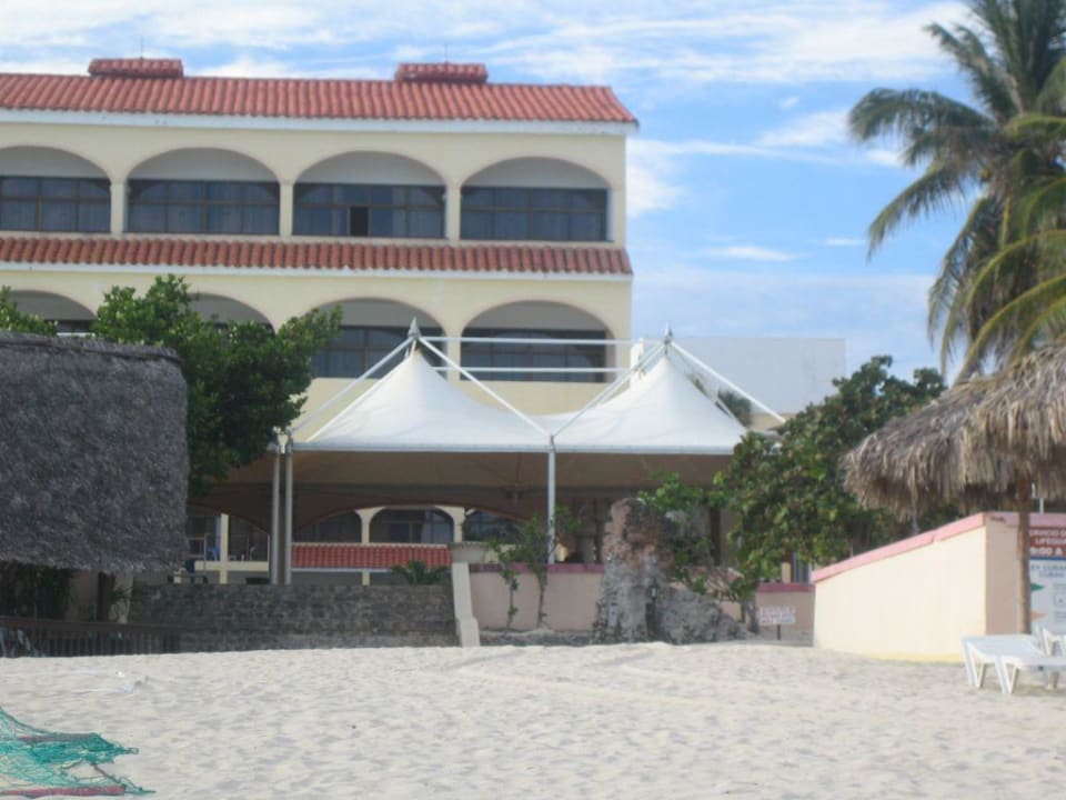 Blick vom Strand auf Teil des Hotels