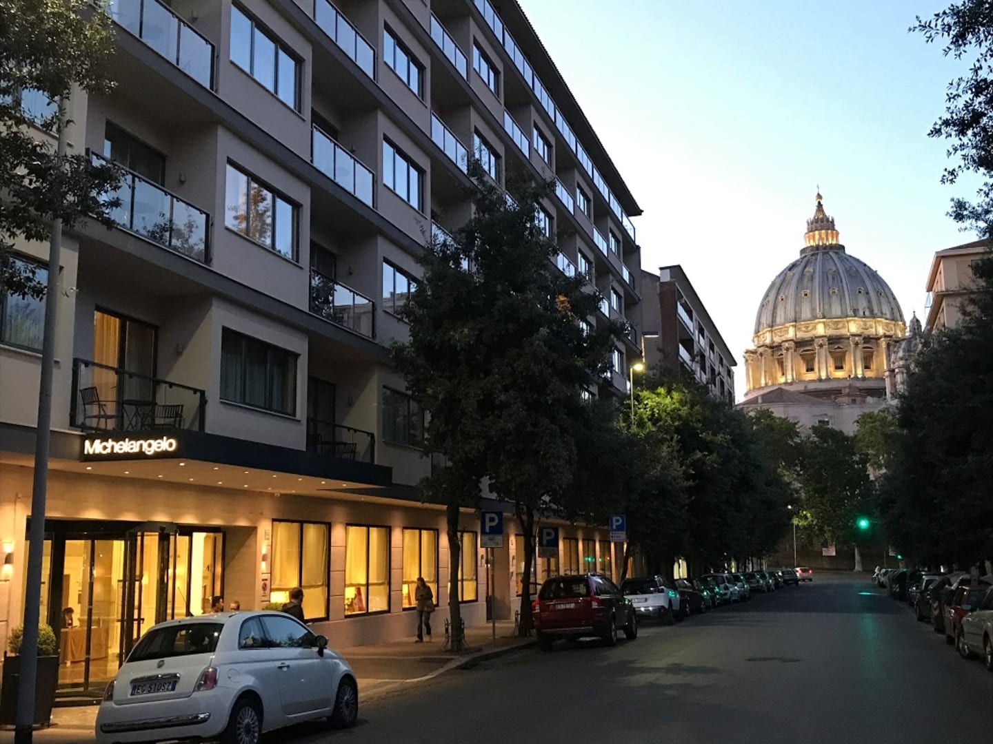 Hotel und Petersdom am Abend