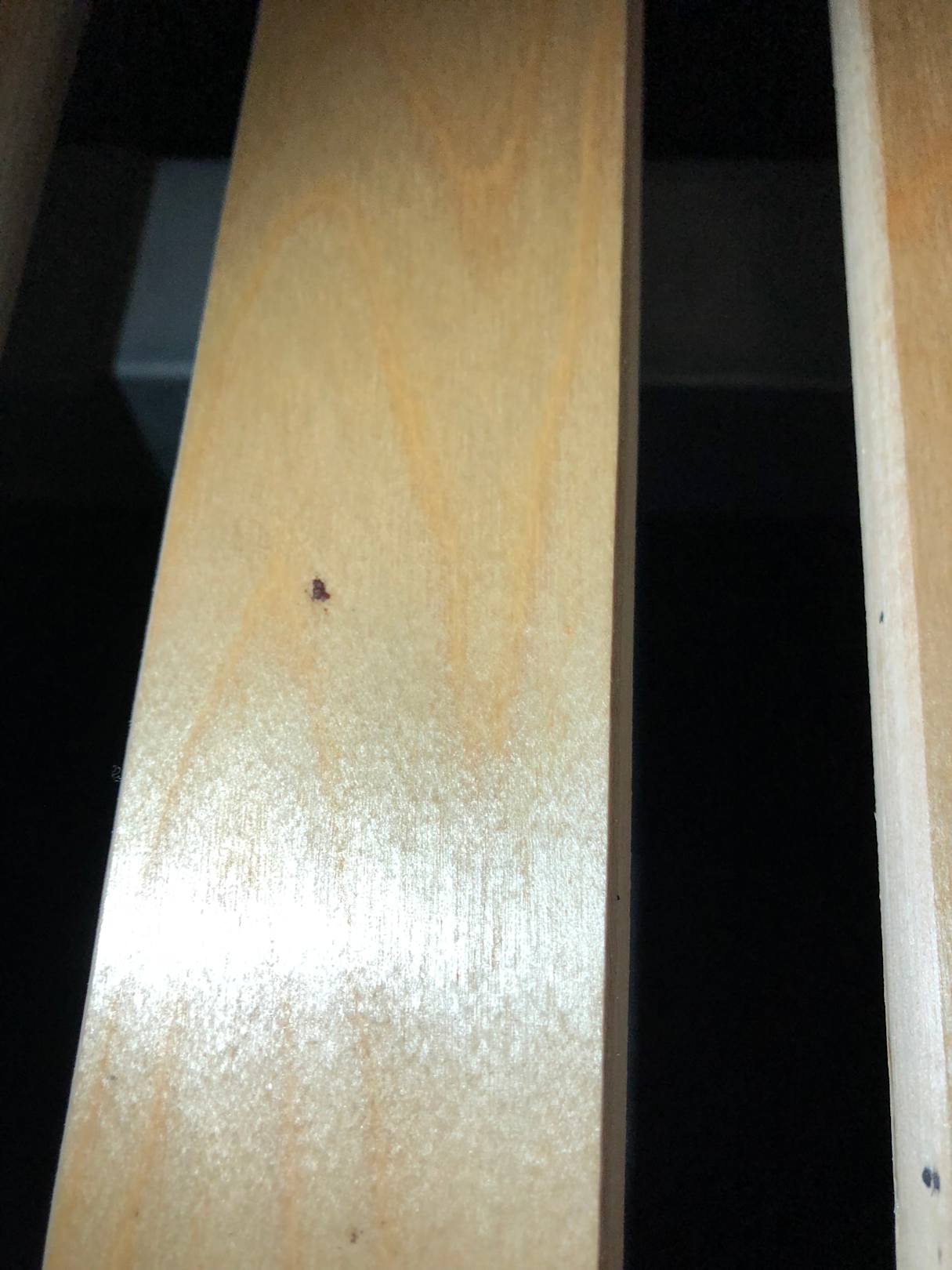Bettwanzenexkremente auf dem Lattenrost von Zimmer 413