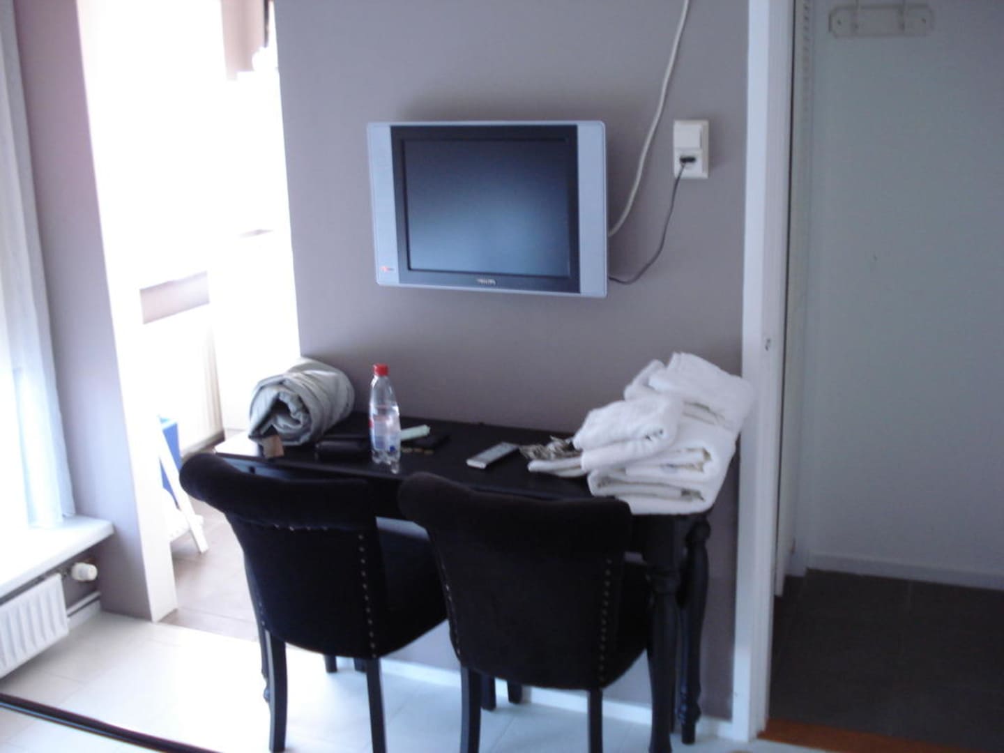 Ein kleiner TV für die Abendstunden, sorry die Sachen auf den Tisch sind von uns