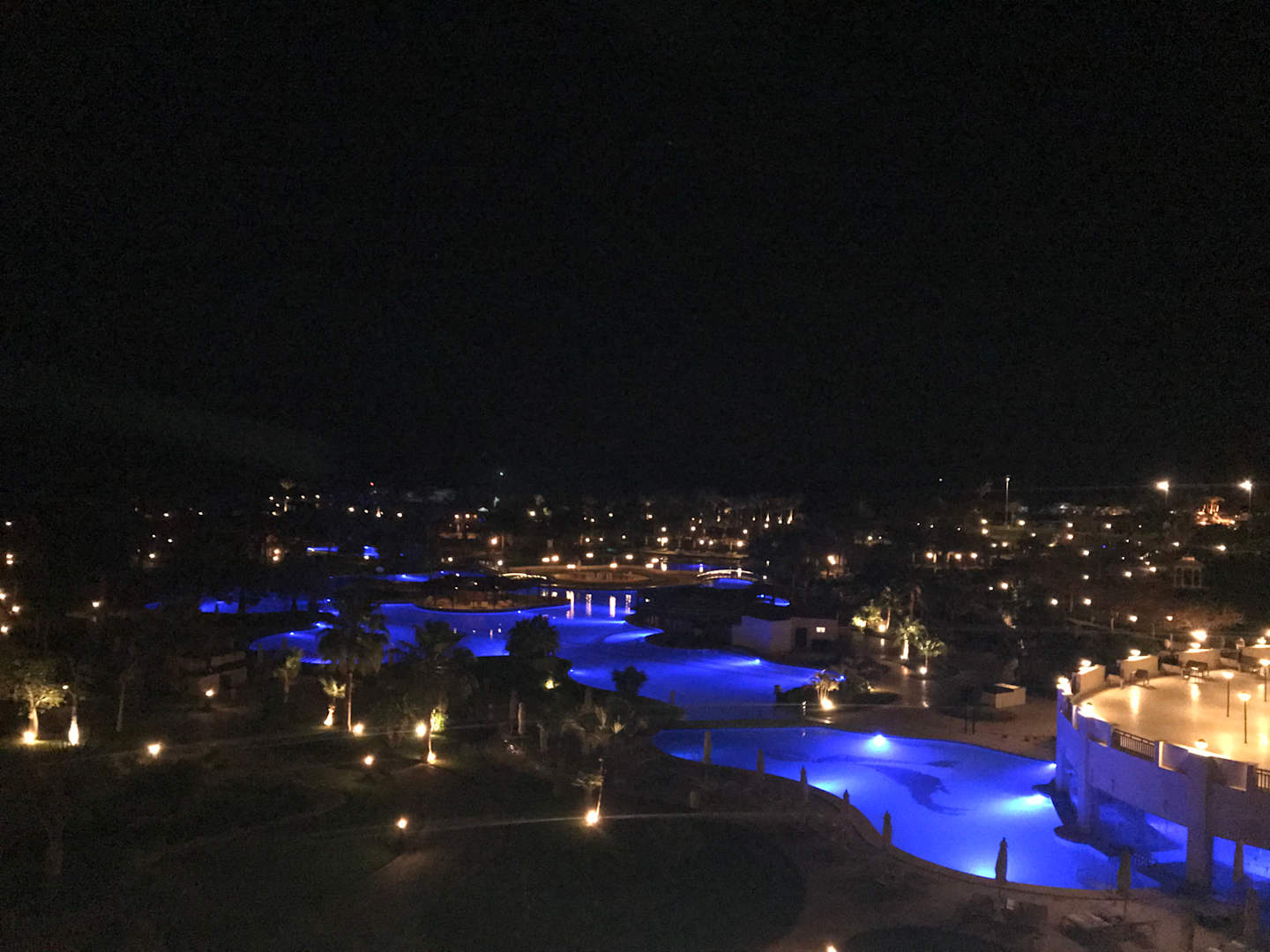 Poolanlage am Abend