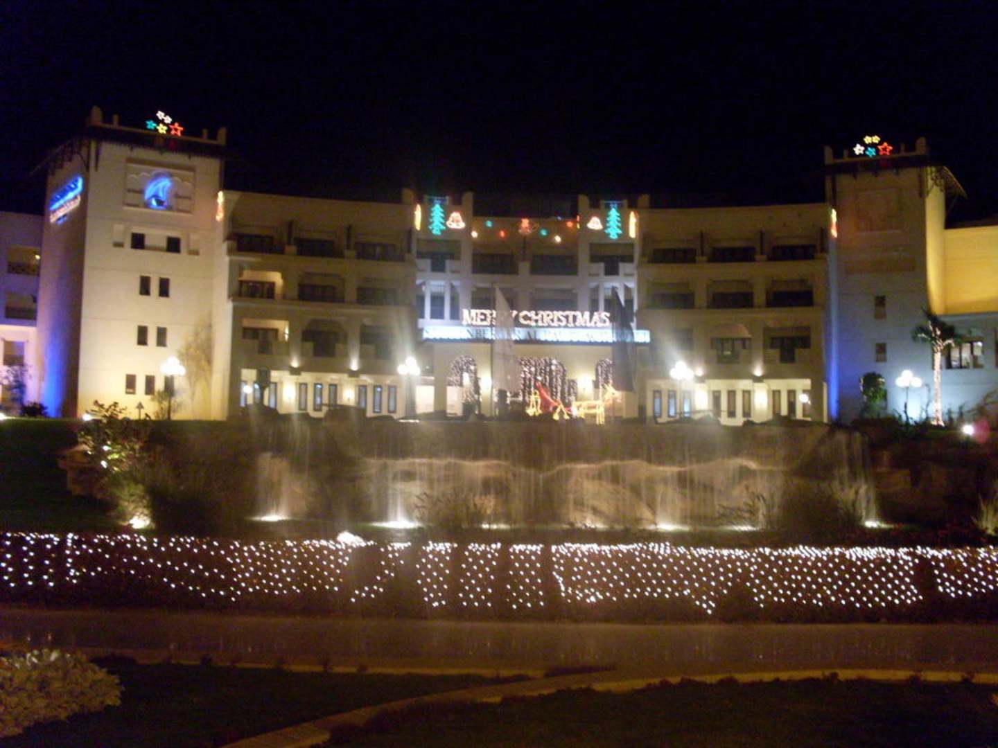 Weihnachtlich dekorierter Haupteingang des Hotels