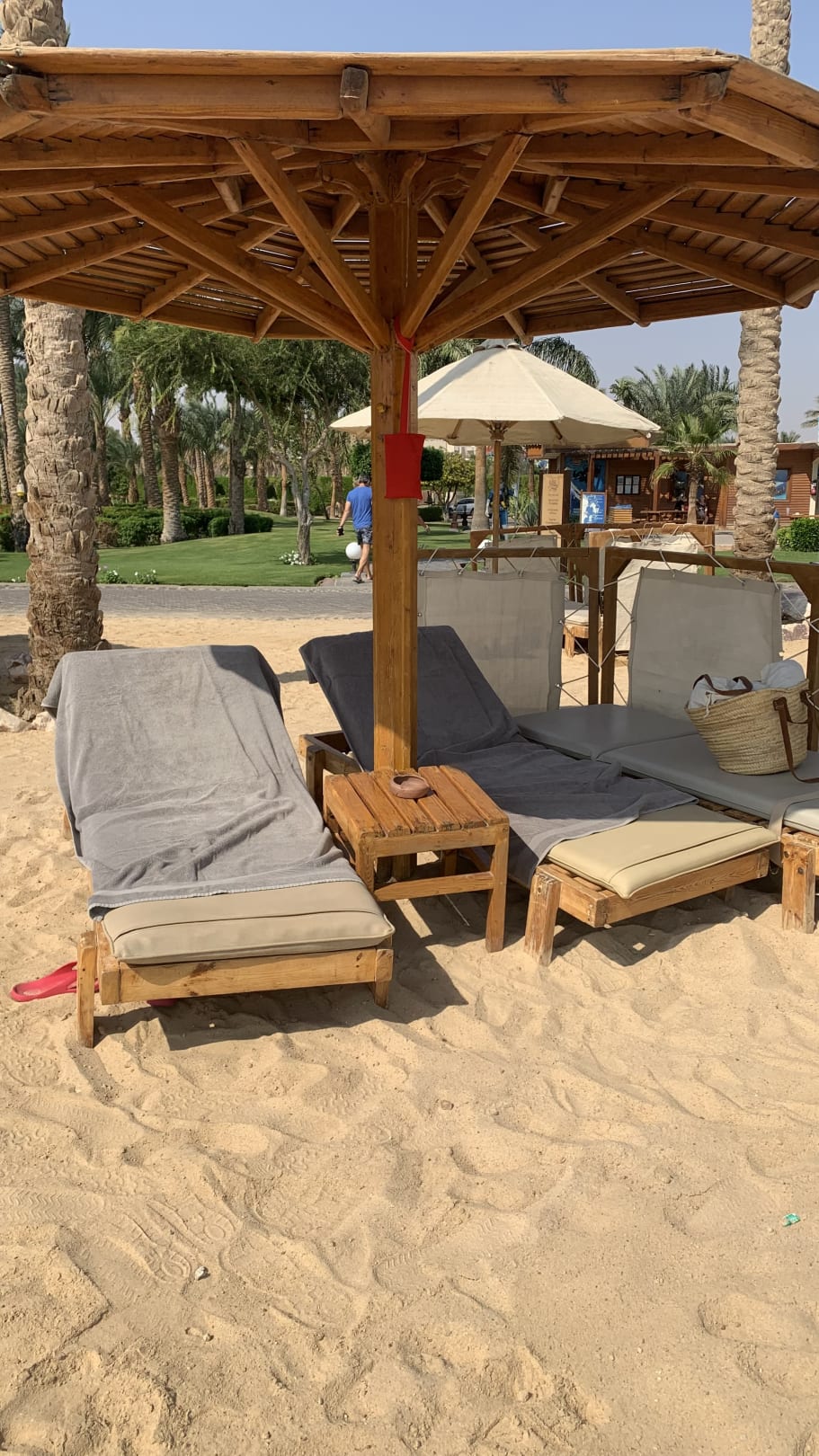 Strandliegen mit windschutz, fühlt man sich sehr wohl und privat👍🏼nicht zu dicht an den anderen Urlauber . Gibt es auch ein „nur für erwachsene“ Steand Abschnitt , hier wird auch für Ruhe und Entspannung gesorgt 👍🏼