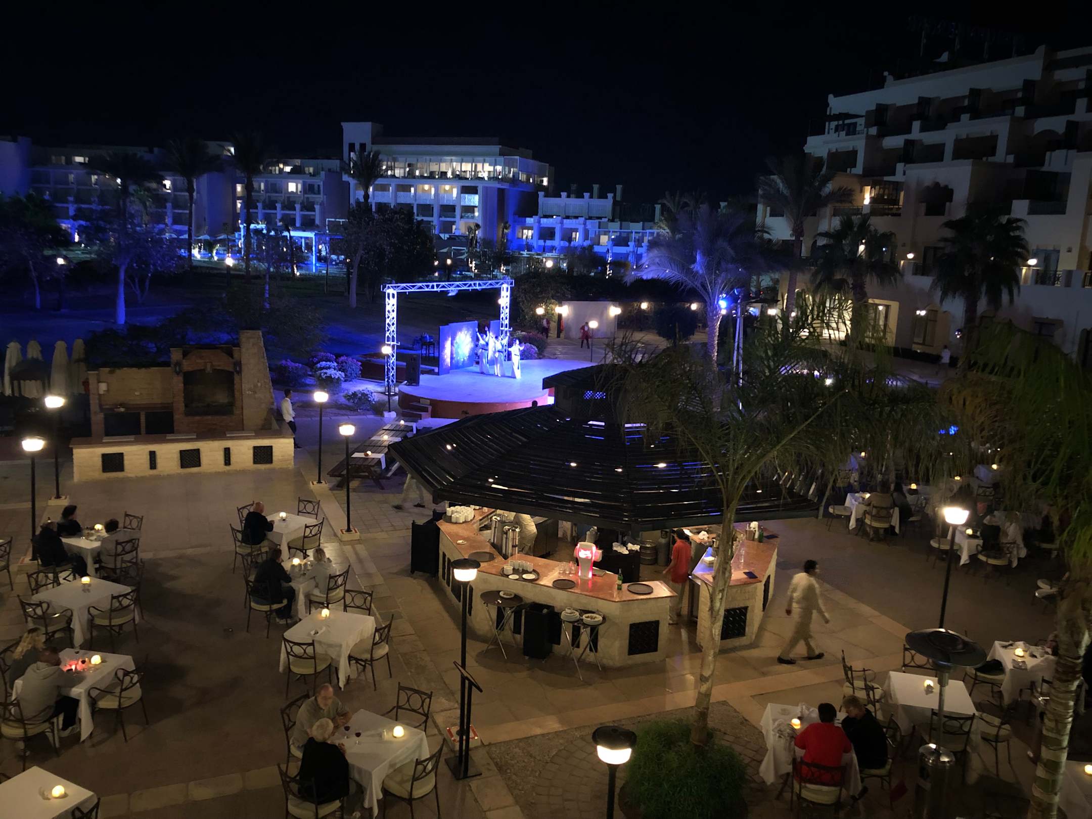 Restaurant Aussen mit abendlicher Show