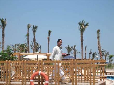 Ein Ober auf dem Weg zu den GästenIMMER HILFSBEREIT. GETRAENKE WERDEN BIS AN DIE LIEGEN GEBRACHT.