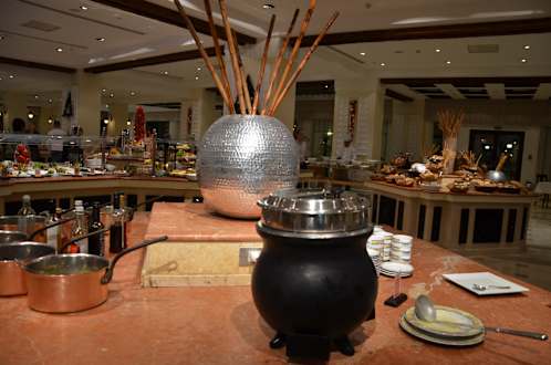 Suppenecke und Brot im HintergrundSpeisenangebote sind vielfältig.