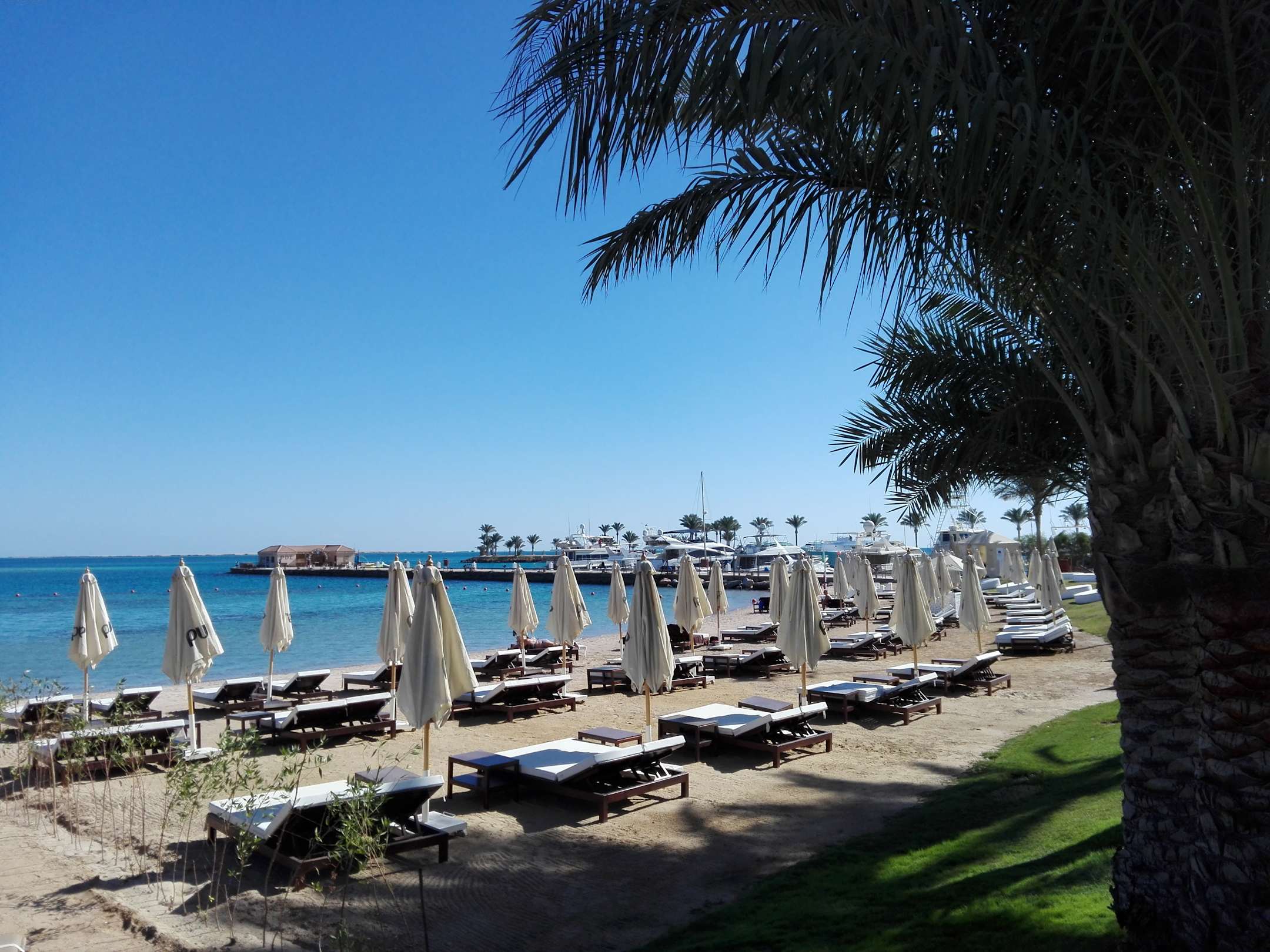 Sonnenliegen direkt am roten Meer