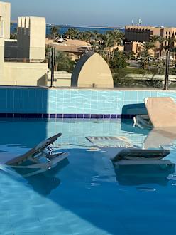 Auf der Dachterasse mit Sonnenligen und Bar