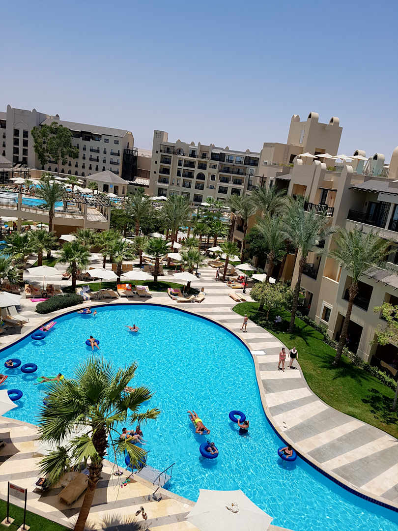 Balkon mit Blick auf die Poolanlage